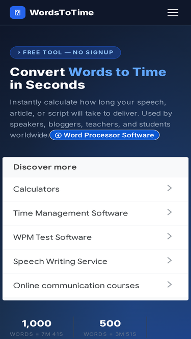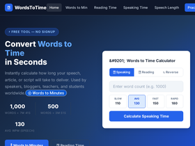 Free words to time converter. Calculate speaking and reading time instantly.