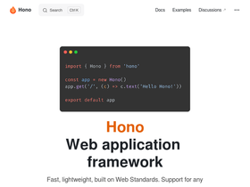 Hono is a small, simple, and ultrafast web framework built on Web Standards. It works on Cloudflare Workers, Fastly Compute, Deno, Bun, Vercel, Netlify, AWS Lambda, Lambda@Edge, and Node.js. Fast, but not only fast.