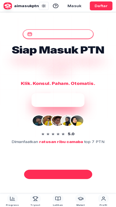100%Platform belajar lengkap untuk persiapan TKA SMA/SMK/MA. Akses materi, latihan soal, dan tryout Bahasa Indonesia, Matematika Wajib, Bahasa Inggris, dan Mapel Pilihan.
