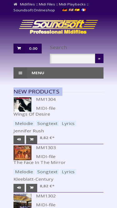 soundsoft midifiles. der midifile shop für professionelle midi playbacks. bestellung einfach per kreditkarte, bankeinzug oder nachnahme, mit der möglichkeit zum sofortigen download.
