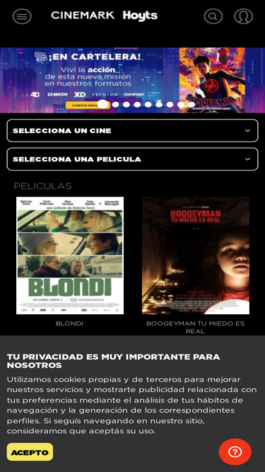 Cinemark Hoyts es una cadena de cines de argentina. Cuenta con complejos ubicados en todo el país. Los complejos cuentan última tecnología de proyección y sonido, brindando la mejor experiencia al espectador. Cinemark Hoyts cuenta con formatos de proyección 2D, 3D, 4D, XD, DBOX, PREMIUM y COMFORT. Nuestros complejos se caracterizan por brindar un ambiente ideal para concurrir con en familia.