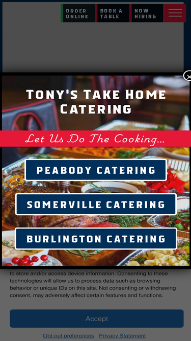 Let's stay in touch! Contact Tony C's Boston to give feedback, book a private party, or ask about events at the waterfront. If you'd like to inquire about a working at Tony C's, drop into one of our five locations. We'd love to hear from you, and we hope to see you soon!