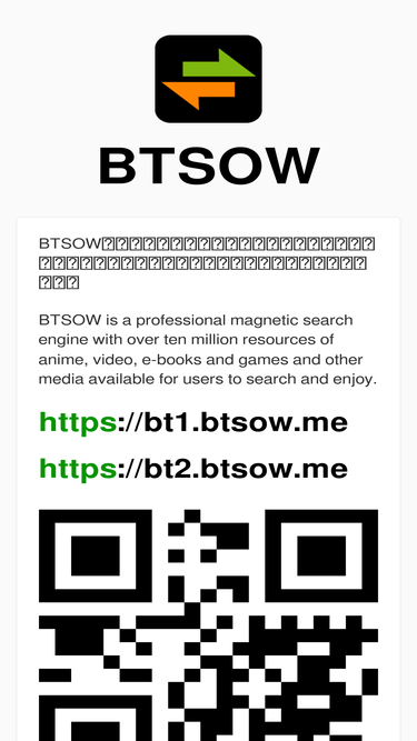 95%btsow是一个专业的磁力搜索引擎,拥有超过千万个动漫、视频、电子书和游戏等媒体的资源可供用户搜索享用。