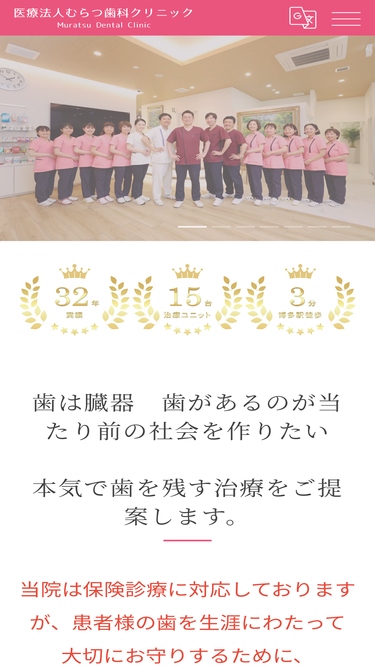 むらつ歯科クリニックは福岡市博多駅から徒歩3分のところにある、噛み合わせ治療・インプラント・矯正歯科・マウスピース矯正(インビザライン)・審美歯科・マイクロスコープ精密治療・ホワイトニングを提供する総合歯科医院です。歯医者として歯の健康が全身バランスに与える影響を考慮した、歯臓治療を提供すています。保険診療の取り扱いもあります。メインは自由診療で安全かつ高度な治療を心がけています。