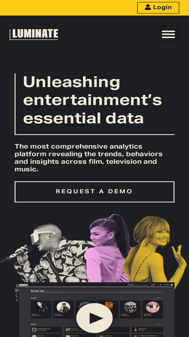 We are Luminate, the entertainment industry’s preeminent data, analytics, and insights company, unleashing access to the most essential information across music, film & television.