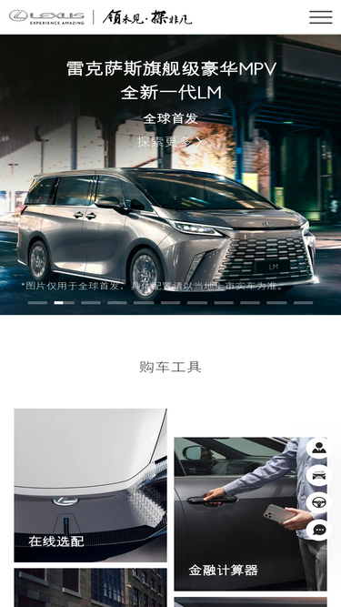 欢迎访问lexus雷克萨斯中国官方网站,在这里您可以查看雷克萨斯所有车型、中国经销商,尖端科技等内容。您还可以查看雷克萨斯最新活动动态,了解雷克萨斯精彩资讯等。立即登录雷克萨斯官网,了解官方权威信息。