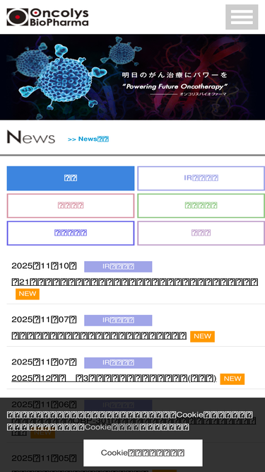 新規抗がん剤テロメライシン(telomelysin)を開発しているオンコリスバイオファーマのhpです。