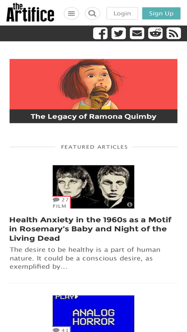 53%the artifice is an online magazine that covers a wide spectrum of art forms, including film, tv, games, anime, manga, and comics.