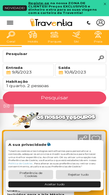 96%traventia é uma agência de viagens especializada na venda de pacotes de viagem flexíveis que combinam alojamentos (hotéis e apartamentos) com atividades. a nossa oferta diversificada de: férias de praia, parques temáticos, viagens de ski, escapadinhas, entre outras, permite aos clientes encontrar promoções de vários tipos e personalizar a sua viagem ideal. destacamos como principais destinos: portugal, espanha, frança, andorra, itália, cabo verde e ainda as caraíbas.