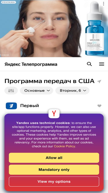 полная телепрограмма на сегодня, завтра, ближайшую неделю. не пропустите время начала любимых фильмов и передач, настроив бесплатное смс-уведомление. программа передач всех популярных телеканалов на яндекс.телепрограмме - фильмы, сериалы, спорт, новости, познавательная документалистика и другие передачи.