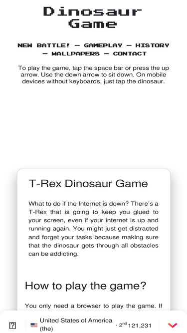 play the running t-rex game online. tap the space bar, press the up arrow, or tap the dino on mobile devices, to start the game.