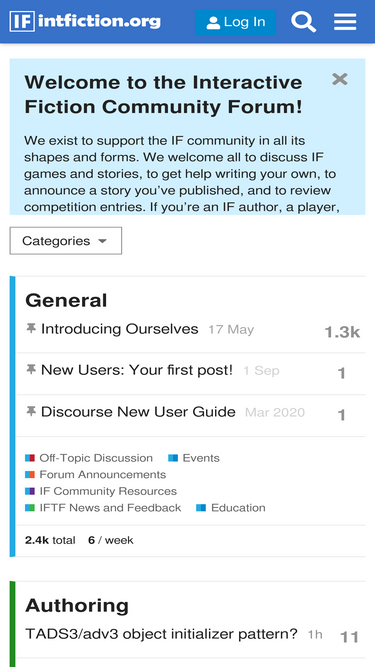 Code of Conduct This is a Civilized Place for Public Discussion The intfiction.org forums are a place for all authors and players, long-time enthusiasts and newcomers to discuss Interactive Fiction. Please treat this discussion forum with the same respect you would a public park. We, too, are a shared community resource — a place to share skills, knowledge and interests through ongoing conversation. These are not hard and fast rules, merely aids to the human judgment of our community. Use the...