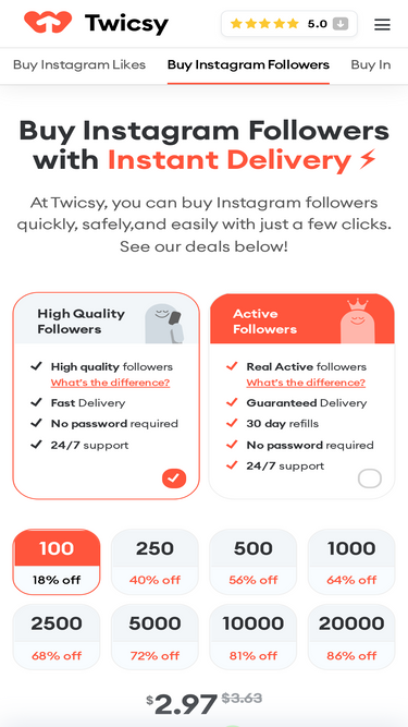 buy instagram followers, likes and views easily and safely from twicsy - the #1 voted instagram growth service in the market.