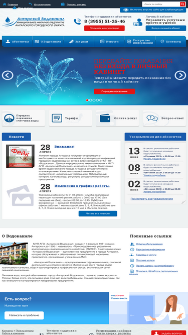 муп аго «ангарский водоканал» создан 11 февраля 1981 года в г. ангарске и до 1996 г. называлось «производственное управление водопроводно-канализационного хозяйства» (пувкх). в настоящее время