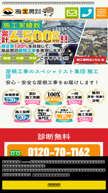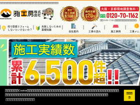 87%高槻市・島本町・向日市・長岡京市地域密着対応中!急な雨漏りにも適切に対応致します。安心安全の屋根工事は、屋根工事・防災・雨漏り専門店の雅工房へ 【雨漏り診断・現場調査・相談無料】0120-70-1162
