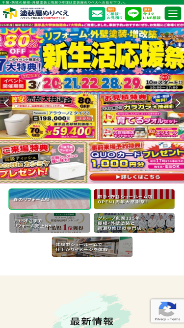 千葉・茨城で屋根・外壁塗装・雨漏り修理をお考えなら、塗装屋ぬりべえにお任せ下さい。 東金ショールーム店 のご案内です。地域に密着/リピート率90%超/信頼の施工実績数30,000件以上/安心の長期保証・最長10年の自社保証。