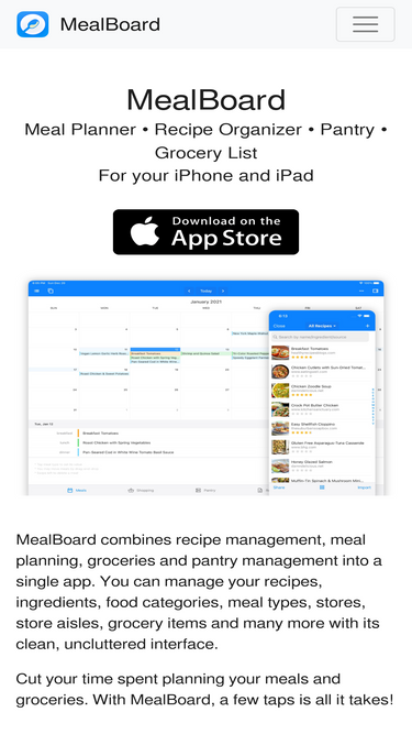 mealboard is a meal planner and recipe manager app that lets you plan your meals for the week and automatically generate your grocery list.
