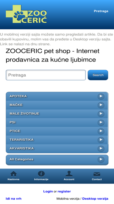 69%Više od 14.000 proizvoda za kućne ljubimce. Online poručivanje. Brza isporuka. Besplatna dostava za porudžbine iznad 3.000 RSD.