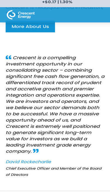 Crescent is a differentiated U.S. energy company committed to delivering value for shareholders through a disciplined growth through acquisition strategy and consistent return of capital.
