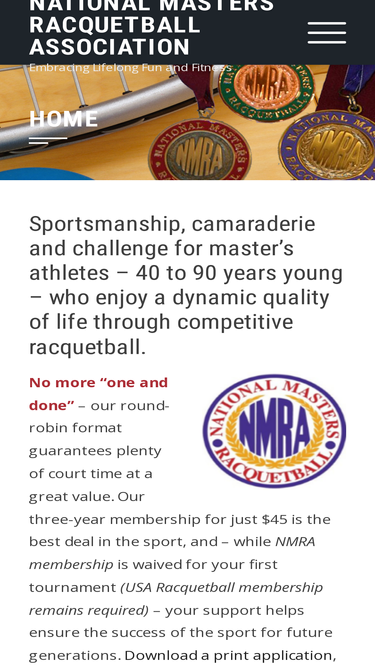 the nmra is a not-profit 501 (c) (3) organization of men and women racquetball players who are age 45 to 90 years.