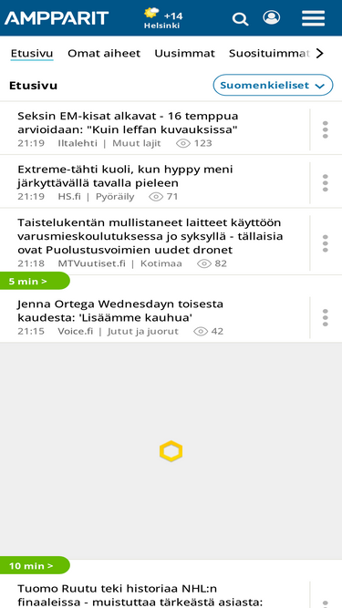 83%Ampparit.com tarjoaa Suomen kattavimman uutiskatsauksen. Klikkaa ja löydä kätevästi kaikki tuoreimmat uutiset!
