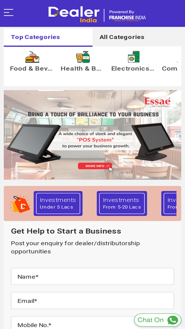 if you are looking for top Distributorship opportunities based on your budget, area, and product categories. We will help you line up India's t