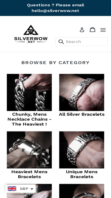 100%Very Heavy Silver Bracelets & Necklaces For Men. Very Thick, Chunky Pieces! 15 - 45mm Wide. Weights From 100 grams - To Over 2 kg ( 7 oz - 70 oz ) Other Unique Designs For Those Who Like To Turn Heads. Always Unique - Designs Made in Very Small Numbers Silverwow are Specialists in Mens Heavy Sterling Silver Jewelry