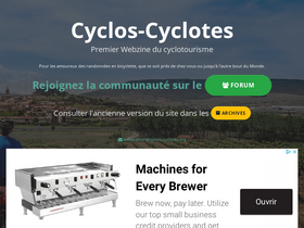 cyclos-cyclotes est le premier webzine consacré au cyclotourisme. pour les amoureux des randonnées en bicyclette, que ce soit près de chez vous ou jusqu'à l'autre bout du monde. séjours, randonnées, circuits, photos insolites, cols mythiques, montées célèbres, tour de france cyclotouriste, voyages, paris-brest-paris, bordeaux-paris, tables de braquets