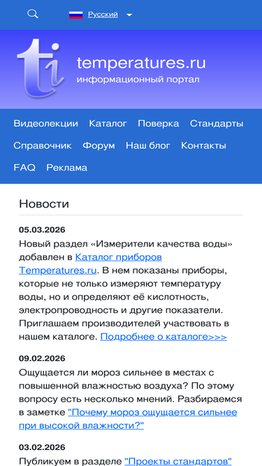 выбор датчика температуры, описание температурных шкал, расчёт темпаратуры по показаниям термометра, точность и чувствительность термометров и термопар, публикации по температурным и теплофизическим измерениям, форум специалистов по температуре