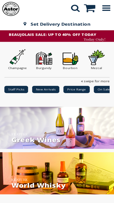 74%welcome to new york city's largest wine & spirits store online. come see why the wall street journal says astorwines.com is one of the best websites for buying wine online. check out our daily deals and features. view our large selection of wines, spirits, and sake. we specialize in everything from old world to new world, organic & natural wines, whiskeys & scotches and everything else.