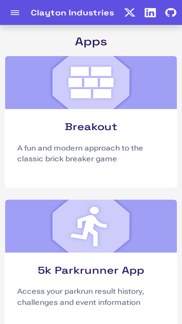 welcome to clayton indsutries. the home of the 5k parkrun app, breakout, various unity plugins, development tools and coding tutorials