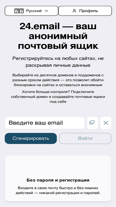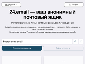 Временная электронная почта 24.email для анонимной регистрации на любых сайтах. Почта не удаляется, письма хранятся 10 дней.