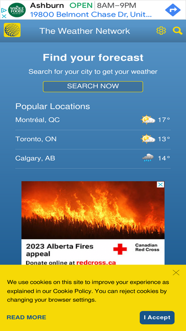 weather reports for over 50,000 u.s. locations includes current conditions, three-day forecasts, seven-day forecasts, hourly forecast tracking, weather history, weather radar and warnings.