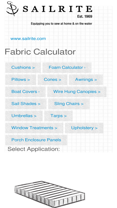 select your project and the sailrite fabric calculator will estimate how many yards of fabric you need to make a cushion, throw pillow, rectangular tarp, and sail shades.