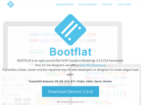 bootflat is an open source flat ui kit based on bootstrap css framework. and, for the designers, we offer a free psd download. it provides a faster, easier and less repetitive way for web developers or designers to create elegant web apps.