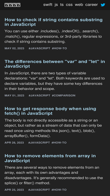 a personal blog of the overlooked bits in modern programming languages including but not limited to javascript, typescript, swift, rust, go.
