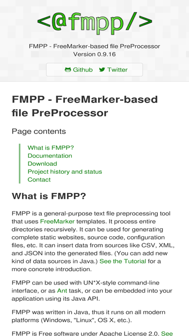 command-line/ant-task/embeddable text file preprocessor. macros, flow control, expressions. recursive directory processing. extendable in java to display data from any data sources (as database). can generate complete homepages (tree of html-s, images).