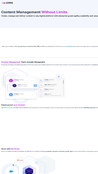 dotCMS empowers brands to simplify content creation, management and delivery. Consolidate digital experiences across channels and reduce developer dependency.
