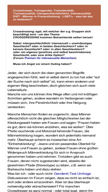 76%Texte und Bilder von Land und Leuten f�r trans- und intersexuelle Menschen, Crossdresser und deren Partnerinnen und Familien