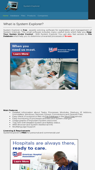 homepage of system explorer. freeware tool for displaying and managing system internals