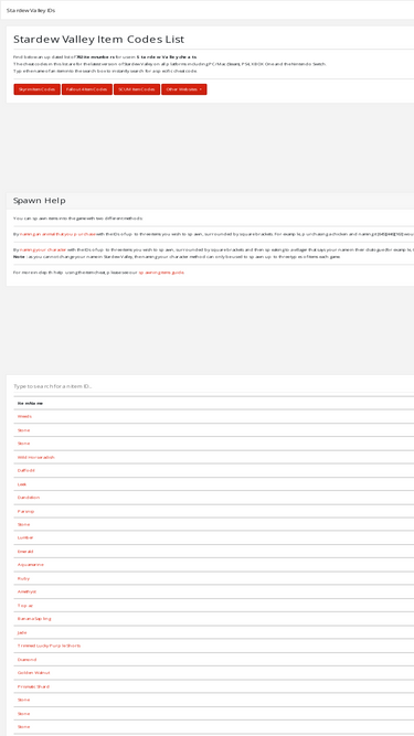 a searchable stardew valley item id list, with all stardew valley cheats for the latest version (1.5) of the game on pc/mac (steam), xbox one, ps4 and the nintendo switch.