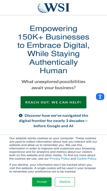 WSI is a global network of digital marketing agencies. We've helped over 150,000 businesses solve their digital marketing problems for over two decades.
