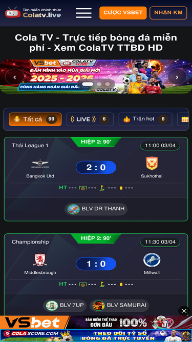 ColaTV phát trực tiếp bóng đá chất lượng cao, không giật lag. Xem bóng đá trực tuyến miễn phí tại Cola TV cùng đội ngũ BLV chuyên môn cao.