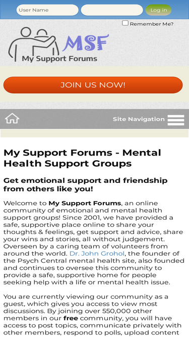 98%over 250 self-help support groups and forums for emotional support, mental health, psychotherapy, and mental illness.