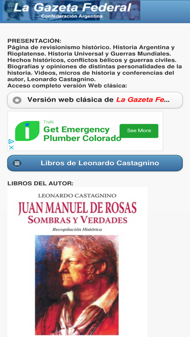 76%historia argentina confederacion argentina provincias unidas del río de la plata historia revisionista frente a la historia oficial biografias el restaurador de las leyes juan manuel de rosas libertador general san martin manuel belgrano bartolome mitre domingo faustino sarmiento unitarios y federales efemerides episodios historicos cronologia de la patria mitrismo liberal soberania nacional vuelta de obligado batalla de caseros gobierno de rosas bibliografia leonardo castagnino guerra del paraguay triple alianza la gazeta federal