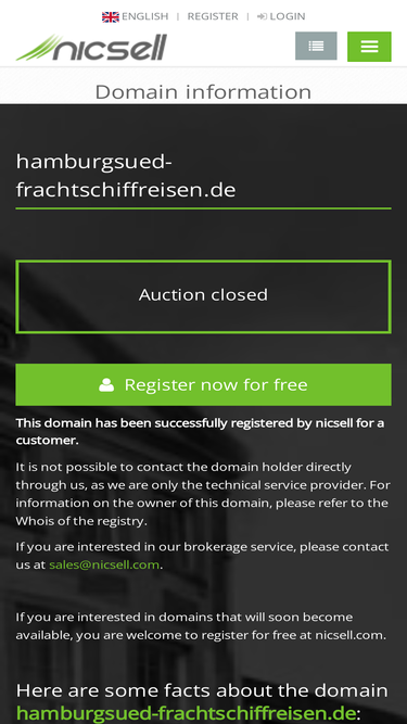 Easily & quickly from 10 € to your desired domains with nicsell. Simple payment with PayPal. Free registration. No risk.